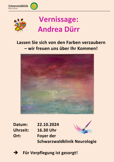 Seit Anfang Oktober stellt erneut Andrea Dürr Ihre schönen Werke bei uns aus. Am 22.10.2025 um 16.30 Uhr wird im Foyer der Schwarzwaldklinik eine Vernissage veranstaltet, bei der die Künstlerin sich und Ihre Werke vorstellt. Lassen Sie sich von den Farben verzaubern und zum Träumen bringen.